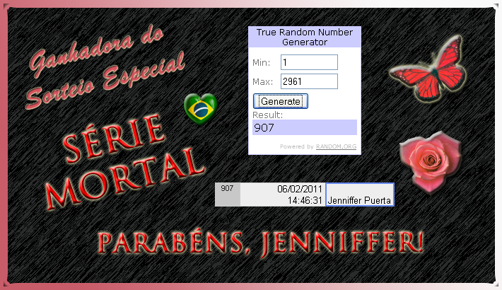 Cada blog é responsável pelo envio de um livro e o Nora Roberts Brasil , em parceria com a Bertrand, enviará Pureza Mortal para Jenniffer.