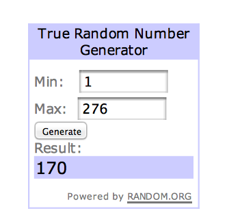 Parabéns! Vc tem 3 dias para entrar em contato. Um email foi enviado para vc. Sorteio realizado - site random.org
