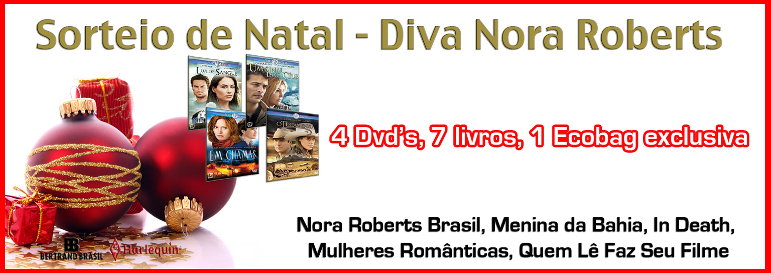 Nora Roberts Brasil, Menina da Bahia, In Death, Mulheres Românticas, Quem Lê Faz Seu Filme São 4 Dvd's de filmes Nora Roberts, uma ecobag exclusiva e 7 livros! Além de muitos marcadores de Regressos. O primeiro sorteado ganhará: - 4 Dvd's ( Testamento, Lua de Sangue, Em Chamas e Um sinal dos Céus); - 7 Livros ( Dom de Natal, Testamento, Lua de Sangue, Fora da Lei, Imitação Mortal, Negócio de Risco e o vira-vira Virtude Indecente/Tesouro Secreto); - 1 Ecobag exclusiva da Diva Nora Roberts; - Marcadores de Regressos. O segundo e terceiro sorteados ganharão marcadores de Regressos. Você não pode perder esse sorteio exclusivo da Diva!!!!! O Papai Noel está ansioso para levar esses prêmios para você!Regras: