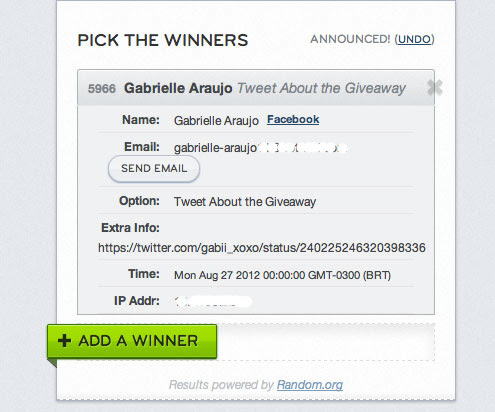 Para conferir o sorteio é só fazer o login com o email que você usou para cadastrar-se na promo, no Rafflecopter.