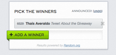 Vocês podem conferir o resultado direto no Rafflecopter, usando o email que se cadastraram.